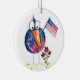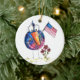 Niedlicher, weißer, patriotischer Vogel mit Fahne Keramik Ornament