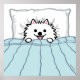 Der hübsche weiße Spitz ist ins Bett gesteckt. Niedliche Wandkunst für Pom Liebhaber. ©Jenn Kay
