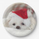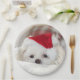 Niedlicher Weißhund in einem Red Christmas Hat Pappteller