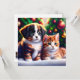 Niedlicher Welpe und Katze unter Weihnachtsbaum Einladung