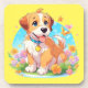 Ein Untersetzer aus Kunststoff mit einem Bild eines niedlichen Welpen, der zwischen den Blume sitzt. Er sieht sehr glücklich aus, von Blume und Schmetterlingen umgeben zu sein. Das perfekte Geschenk für diejenigen, die Hunde Liebe Welpen. Enthält generativen Inhalt.