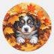 Niedlicher Welpenhund in Herbstlauben Runder Aufkleber