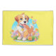 Ein Kissenkoffer mit einem Bild eines niedlichen Welpen, der zwischen den Blume sitzt. Er sieht sehr glücklich aus, von Blume und Schmetterlingen umgeben zu sein. Das perfekte Geschenk für diejenigen, die Hunde Liebe Welpen. Enthält generativen Inhalt.