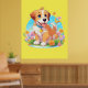 Ein Poster mit einem Bild eines niedlichen Welpen, der zwischen den Blume sitzt. Er sieht sehr glücklich aus, von Blume und Schmetterlingen umgeben zu sein. Das perfekte Geschenk für diejenigen, die Hunde Liebe Welpen. Enthält generativen Inhalt.
