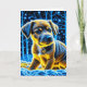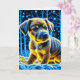 Niedlicher Welpenhund spielt im Schnee Weihnachten Karte