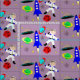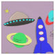 Ein farbenfrohes skurriles Design mit einem niedlichen kleinen Astronauten-Raumfahrer, Raumrakete, fliegender Untertasse, Planeten und Sternen. Fantastischer Neuheiten-Druck in verschiedenen Stoffstilen und Längen zum Anzug von Handwerk und Nähen. .