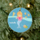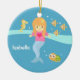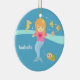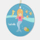 Suchen nach Einzelteilen, um einen Raum des kleinen Mädchens zu verzieren? Addieren Sie diesen Entwurf, um den Raum in eine Szene von unterhalb des Meeres umzuwandeln! Dieser Entwurf kommt mit einer entzückenden Meerjungfrau mit dem orange Haar, das eine rosa Spitze mit einem Herzlogo und einen gelben Starfish in ihrem Haar trägt. Niedliche Unterwassertiere schwimmen vorbei um sie! Die Tiere schließen gelbes Seepferd, gestreifte gelbe und braune Fische und eine kleine Schildkröte mit ein. Personifizieren Sie mit dem Namen des Kindes.