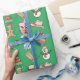 Niedliche und lustige Western Thema Cowboy Cowgirl Land Weihnachtszeitung. Das ist eine festliche Urlaubsumhüllung. Das Design umfasst Cowboystiefel und Hüte< santa, Schneemänner, Lebkuchenmänner, Strumpf, Weihnachtslichter, Bonbons, heilige Beeren und heiße Schokolade. Grüner Hintergrund.