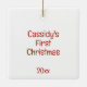 Eine skurrile Illustration eines niedlichen Eisbären mit einem umhüllten Geschenk, das auf einer Keramik zum Gedenken an die erste Weihnachtszeit des Babys gedruckt wurde. Text auf der Rückseite kann geändert werden. AI unterstützte Grafik, die mit kommerziellem Einsatz erworben wurde. Kunstwerk: RedHeronLighthouse