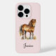 Niedliche Kinder telefonieren Gehäuse in hellrosa mit einer Aquarellfarbe zeichnend von einem niedlichen braunen Pferd und individuelle Name in whimsical Skript.