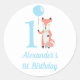 Niedlicher Whimsical Fox & Balloon Blue 1. Geburts Runder Aufkleber
