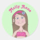 Niedlicher Whimsical Girly Girl Cartoon Zeichnend Runder Aufkleber