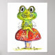 Niedlicher Whimsical Green Frosch auf Toadstool Poster