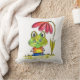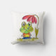 Niedlicher Whimsical Green Frosch unter einer rote Kissen
