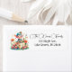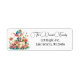 Adorable festliche Weihnachtself sitzend auf einem Geschenk umgeben von Blume Aquarell Illustration Rücksendeadressen-Aufkleber.