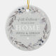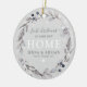 Moderne rustikale Weihnachten in Ihrem New Zuhause Keepake-Ornament, mit einem botanischen, festlichen Blattkranz auf einem schicken grauen rustikalen Hintergrund, einer typografischen Kombination aus Kalligraphie-Drehbuch und Serifen-Schriftart und einem Foto Ihrer Wahl auf der Rückseite.