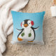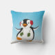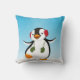Eine niedliche Winterillustrierung: Ein Pinguin mit Handschuhen und Ohrklappe in guter Laune läuft im Schnee.