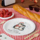 Adorable Baby Dusche Papier Teller Design zeigen einen fröhlichen Moment zwischen einer Mutter Pinguin und ihren bezaubernden Nachkommen, die gemeinsam Fröhlichkeit und Wärme verbreiten.