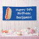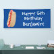 Dieser lustige Hot Dog ist zum Mittagessen mit Ketschup fertig! Im niedlichen Cartoon gezeichnet.