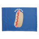 Dieser lustige Hot Dog ist zum Mittagessen mit Ketschup fertig! Im niedlichen Cartoon gezeichnet.