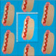 Dieser lustige Hot Dog ist zum Mittagessen mit Ketschup fertig! Im niedlichen Cartoon gezeichnet.