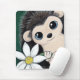 Niedliches wunderliches Igel mousepad für das Büro. Kennzeichnet eine Malerei eines blau-mit Augen Igels, der eine weiße Gänseblümchen ähnliche Blume hält. Geschaffen von Originalvorlage © Lisa Marie Robinson. Alle Rechte vorbehalten.