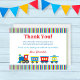 Mit dieser niedlichen Train Dankeschön-Karte können Sie sich nach einer Geburtstagsfeier zum Thema Zug bei Ihren Gästen bedanken. Bearbeiten Sie den Text mit Ihrer eigenen Nachricht oder verließ, wie er ist, und unterschreiben Sie mit dem Namen Ihres Kindes oder Ihres Kindes. Auf der Rückseite ist Platz, um eine persönliche Nachricht zu handschreiben, wenn Sie sie wählen, oder sie leer verlassen. Diese Dankeschön-Karte verfügt über einen niedlichen roten, blauen und gelben Zug mit den Worten Dankeschön in einem großen Schriftart. Es gibt eine generische Dankeschön-Nachricht und eine Signaturzeile, die mit "Liebe" beginnen, und kann mit einem oder mehreren Namen personalisiert werden. Alle Texte können individuell angepasst, Farben geändert oder gelöscht werden.