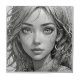 Niedliches Anime-Mädchen mit großen Augen, Schwarz-Weiß-Portrait zeichnend.