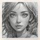 Niedliches Anime-Mädchen mit großen Augen, Schwarz-Weiß-Portrait zeichnend.