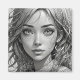 Niedliches Anime-Mädchen mit großen Augen, Schwarz-Weiß-Portrait zeichnend.