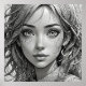 Niedliches Anime-Mädchen mit großen Augen, Schwarz-Weiß-Portrait zeichnend.