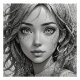 Niedliches Anime-Mädchen mit großen Augen, Schwarz-Weiß-Portrait zeichnend.