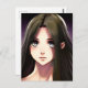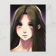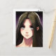 Niedliches Anime-Girl mit braunem Haar und blauen Postkarte