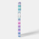 Ein niedliches und präftiges iPhone 15 Gehäuse mit farbenfrohen Streifen in den Farben Aqua grün, blau, pink und lila.