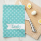 Niedliches aquamarines Polka-Punkt-Küchen-Tuch mit Nameaufkleber