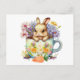 Niedliches Aquarellon Bunny in Blume Teezeremonie Postkarte
