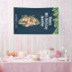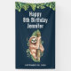 Geburtstagsparty-Banner mit niedlichem Aquarelldesign mit einem niedlichen Faultier an einem Baumzweig, umgeben von grünen tropischen Blätter. Dunkelblauer Hintergrund.