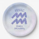 Diese hübsche, personalisierte lila und Lavendel Aquarius Geburtstagsfeierplatte zeigt Ihr astrologisches Zeichen aus dem Zodiac in einem schönen Funkeln wie die Sternbilder. Passen Sie diese niedliche Dekoration mit Ihrem Namen in einem schönen kursiven Skript für jemanden mit einem Ende Januar oder Anfang Februar Geburtstag.
