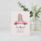 Senden Sie Ihre neue Adresse an Freunde und Familie mit dieser sehr niedlichen Aquarell-Abbildung von rosa Auto mit Gepäckpostkarte.
