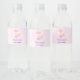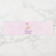 Wasserflaschen-Etiketten mit einer hübschen Abbildung. Ein kleines Babyhaus mit einer winzigen goldenen Krone. Von Ballons in einer rosa Herzdecke getragen.