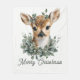 Freuen Sie sich auf den Urlaub mit diesem bezaubernden Aquarellbaby Hirsch Weihnachtsgeschenk. Dieses reizvolle Walddesign mit einer hübschen Gartenanlage umgeben von einem festlichen grünen Kranz, zarten Schneeflocken und der herzlichen Botschaft "Frohe Weihnachten" ist ideal für Familien, Freunde oder Naturliebhaber. Ein gemütliches, skurriles Design, das den Zauber der Wintersaison einfängt. Ideal für rustikale Urlaubsstimmung, Weihnachtsthemen im Wald oder für alle, die niedliche Tiere Lieben.