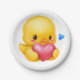 Niedliches Baby-Duckling mit rosafarbenem Valentin Pappteller
