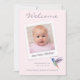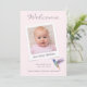 Modernes, Minimalistisches, stilvolles, stylisches Foto, 3 Fotos, mehrere Fotos weich rosa, trendige Farbe, Girly Birth Announcement Card Dankeschön Karte, Einführungskarte, Begrüßung, Begrüßung Kindermädchen, Babyboy mit bezauberndem Aquarellkolibri in rosa lila Pastellfarben. Personalisieren Sie diese wunderschöne Karte mit Ihren neugeborenen Fotos und Geburtsstatistiken. Bitte ersetzen Sie die Beispieldaten durch Ihr eigenes Foto. Beispiele für Fotos mit freundlicher Genehmigung von https://pixabay.com/es/users/amyelizabethquinn-52073/