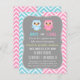 Niedliches Baby Owl Thema Zickzack Gender Reveal P Einladung