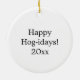 Personalisierte Weihnachtsschmuck. Niedliches Baby Cartoon Schwein mit einer gelben Blume ai art.
