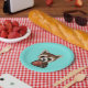 Niedliches Baby-roter Panda, der mit Basketball Pappteller