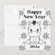 Dieses Schwarz-Weiß-Design mit einem niedlichen Baby-Zebra mit Feuerwerk und lebendigem Text "Happy New Year 2024". Das Jahr kann individuell angepasst werden. Diese Postkarte ist die perfekte Wahl, um dieses neue Jahr Freude zu verbreiten!