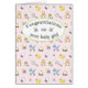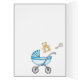 Niedliches Muster mit Babyartikeln auf rosa Untergrund: Teddy, Gummipudel, Schnuller, Babyflasche, Kinderwagen... Für ein kleines Mädchen.