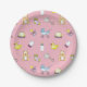 Niedliches Muster mit Babyartikeln auf rosa Untergrund: Teddy, Gummipudel, Schnuller, Babyflasche, Kinderwagen... Für ein kleines Mädchen.