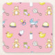 Niedliches Muster mit Babyartikeln auf rosa Untergrund: Teddy, Gummipudel, Schnuller, Babyflasche, Kinderwagen... Für ein kleines Mädchen.